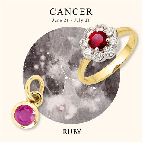 Rubies represent strength, passion, and self-assurance. Cancer folks can often be so focused on helping others, they lose their sense of confidence and personal power. Wearing a ruby Cancer birthstone ring can help you remember to not settle for less than you deserve.